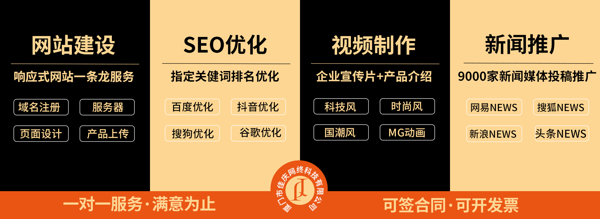 H5響應(yīng)式網(wǎng)站搭建設(shè)計.外貿(mào)網(wǎng)站制多.站群推廣.百度谷歌SEO優(yōu)化推廣.媒體新聞投稿.小程序公眾號開發(fā).視頻宣傳片制作.企業(yè)郵箱滿足不同行業(yè)客戶的各種需求